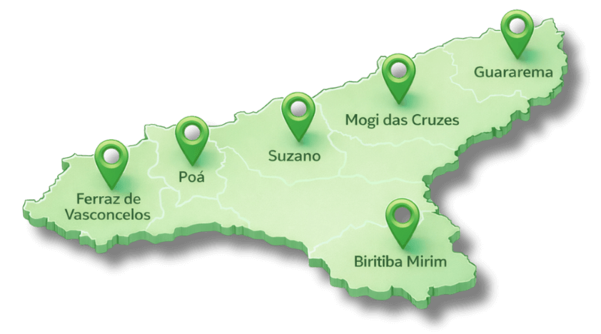 Mogi, Suzano, Ferraz, Poá, Guararema e Biritba.